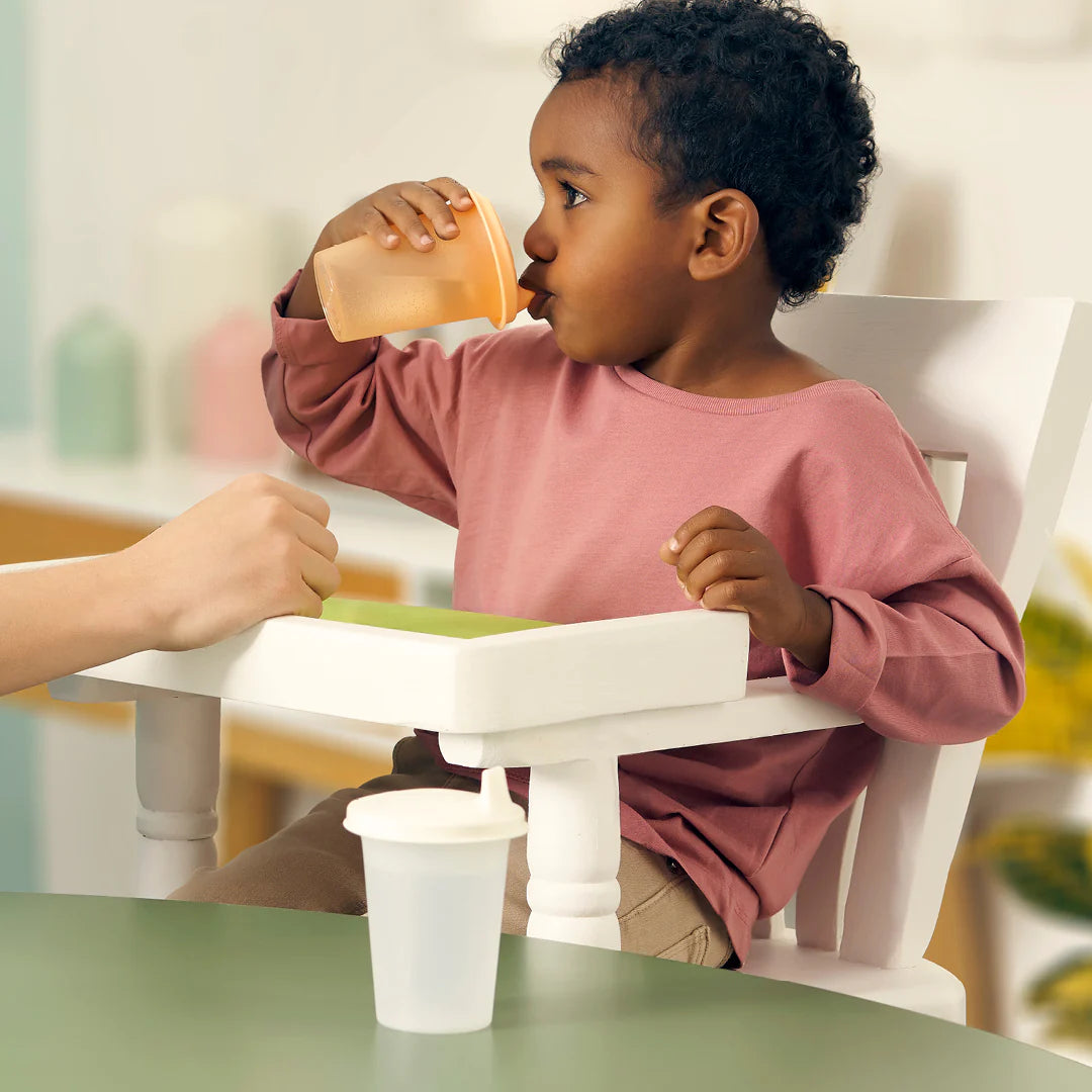 These durable toddler cups are recommended for ages 6-24 months. Each plastic sippy cup with lid helps contain spills and stacks for space-saving storage at home or on the go.